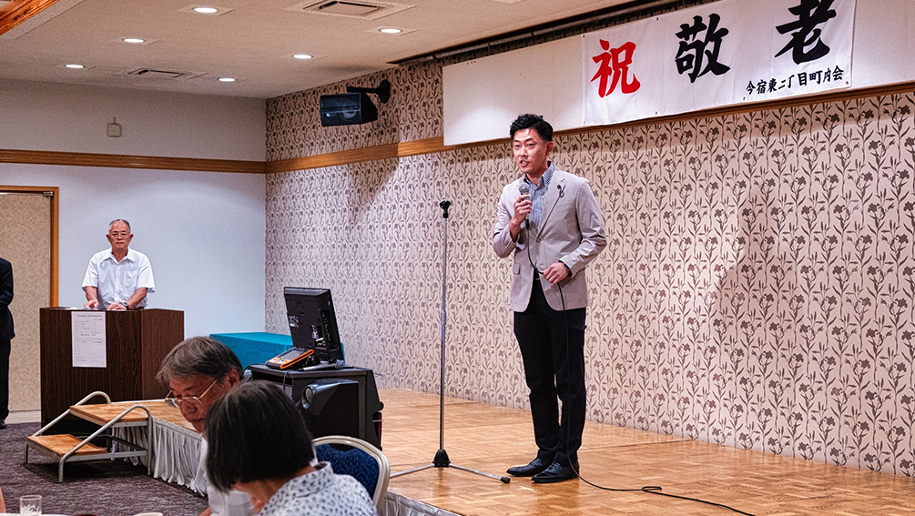 各校区や町内会で開催された敬老会にお伺いし、長年に渡り地域を築いてこられた皆さまに感謝と祝意をお伝えさせていただきました。
